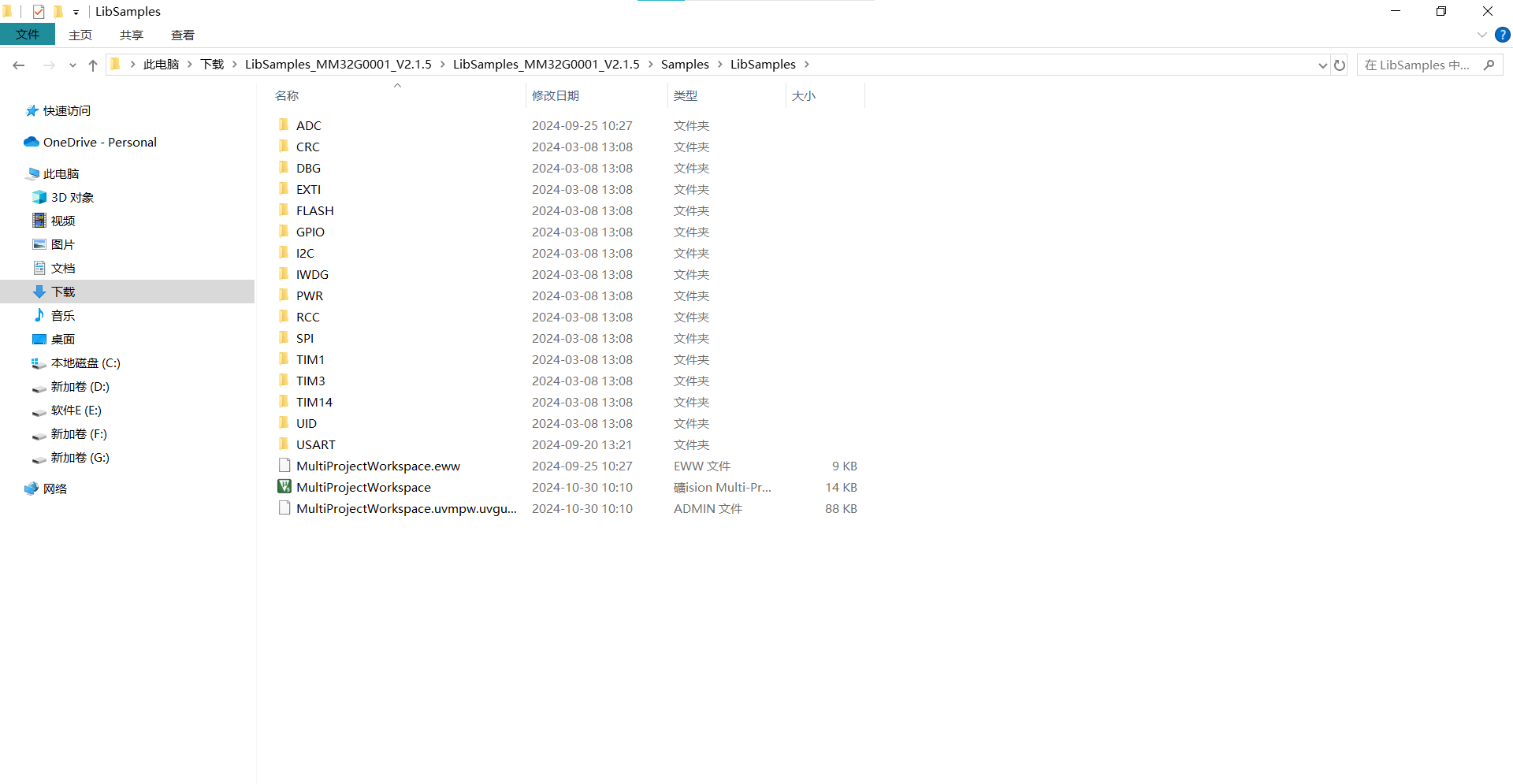 3、安装好对应的安装包后,下载灵动微电子例程,打开文件可以看到每一个功能都有官方例程