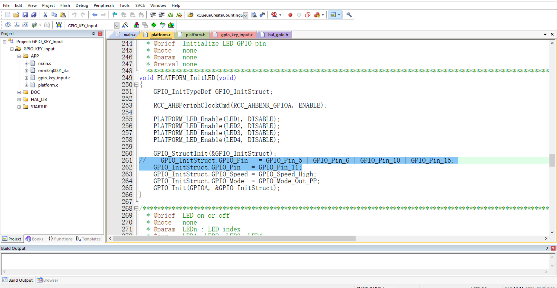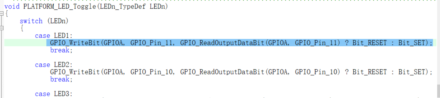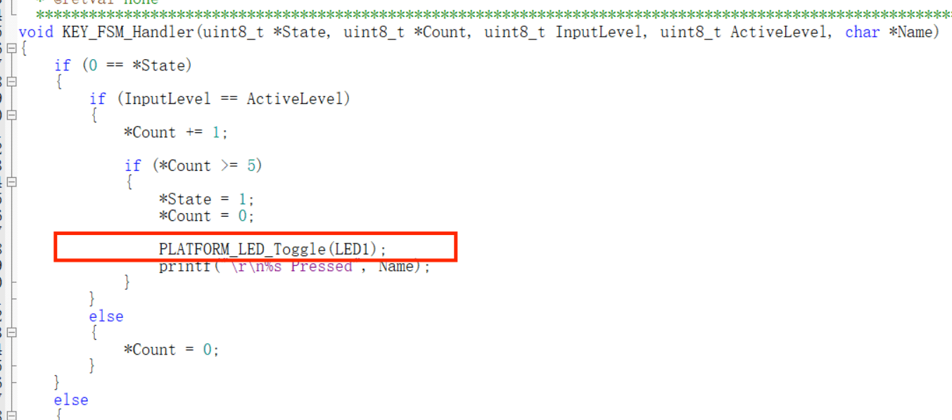 在gpio_key_input.c的中断处理函数里面添加灯翻转的函数