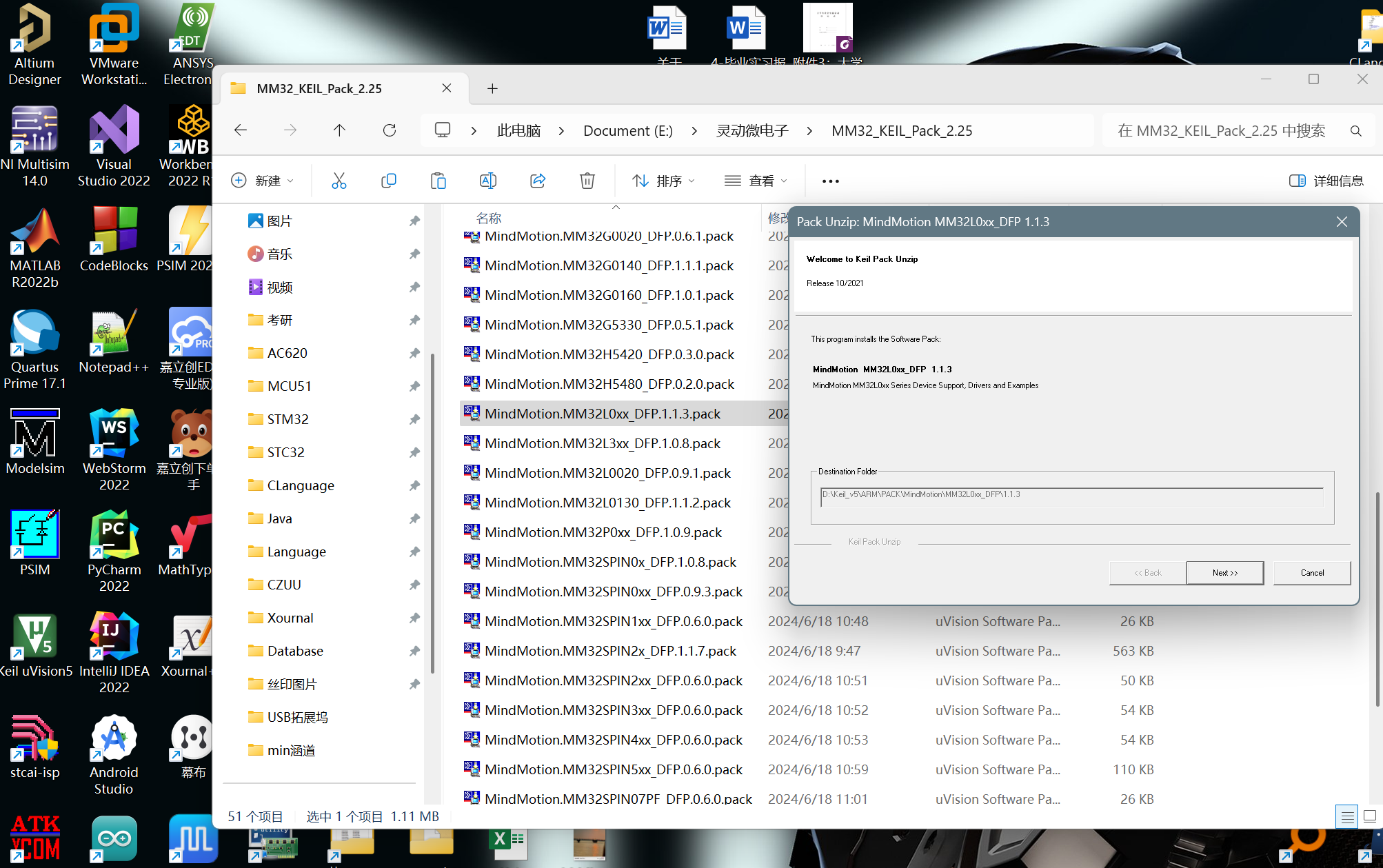 选择MM32L0xx_DFP.1.1.3.pack,双击安装,默认安装到KEIL安装路径中