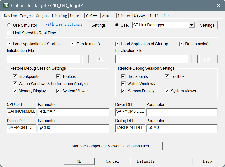 5.在Debug中选择自己的下载方式,这里我用的是ST-Link
