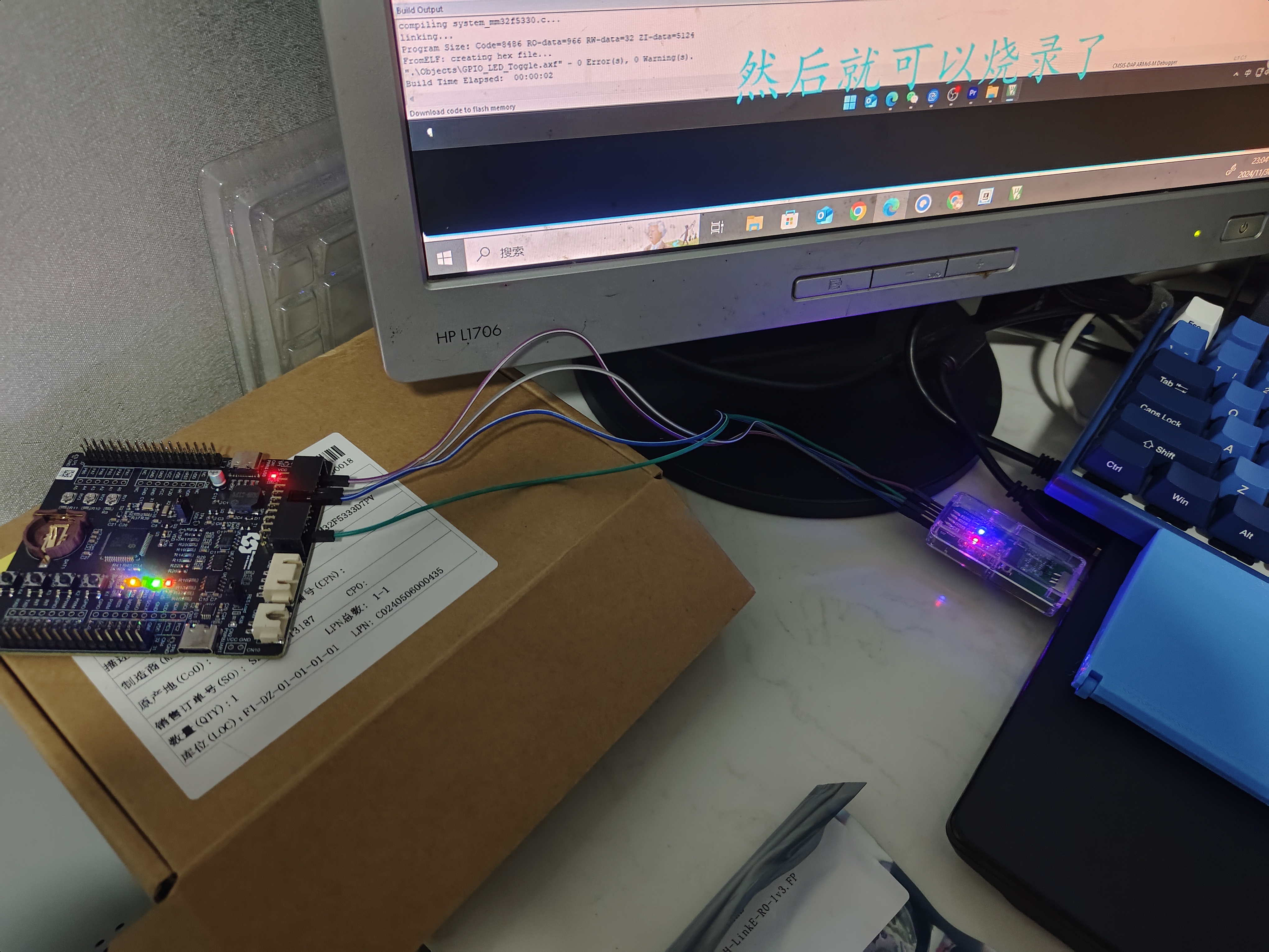 该开发板的板载主控属于的32位ARM,由于只有板载接口,但不具备程序直接烧录的功能,故需要利用烧录器进行程序烧录。