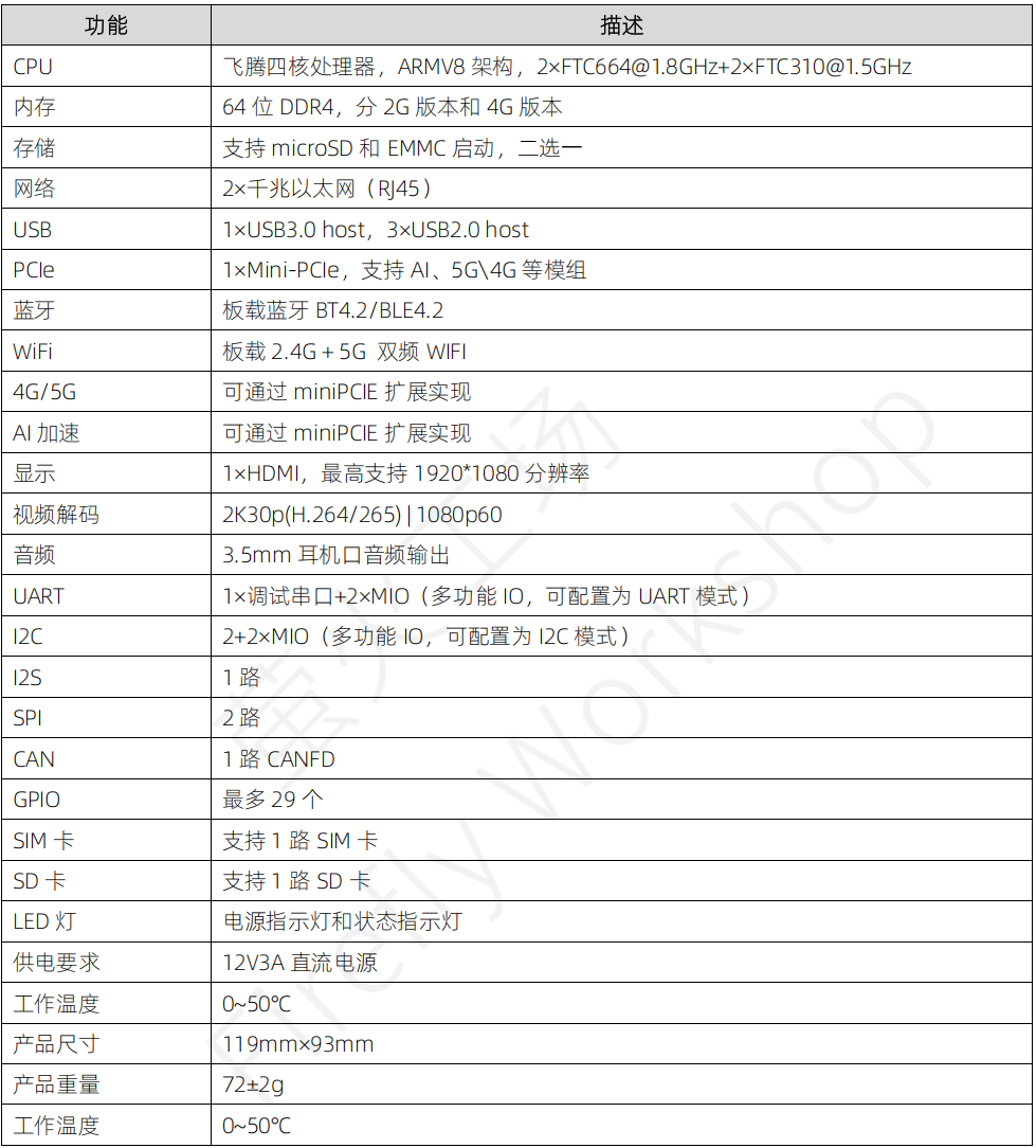 本文主要讲解飞腾派4G开源开发板的基本环境的搭建,包括系统安装、网络配置、开发工具设置等关键步骤,旨在帮助用户快速上手并高效利用该开发板进行项目开发。配置开发板的SSH服务,以便用户能够通过远程连接实现文件的上传和下载,从而简化开发流程并提高工作效率。对开发板的板载硬件资源进行了详细介绍,帮助用户全面了解其硬件配置和功能特性。飞腾派4G开源开发板搭载了高性能的飞腾处理器,支持4G网络通信,具备强大的计算能力和灵活的扩展性。通过本文的指导,用户将能够快速掌握飞腾派4G开发板的基本使用方法,为后续的嵌入式开发项目奠定坚实的基础。