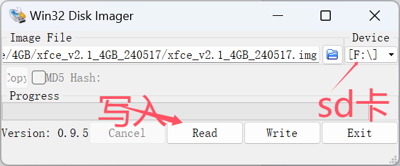 首先解压飞腾派资料系统镜像得到img文件,然后利用win32disk软件进行烧录sd卡,飞腾派默认sd卡启动,我选用的是ubuntu_xfce,该开发板支持OpenKylin、OpenHarmony、SylixOS、RT-Thread、Debian等其他操作系统。