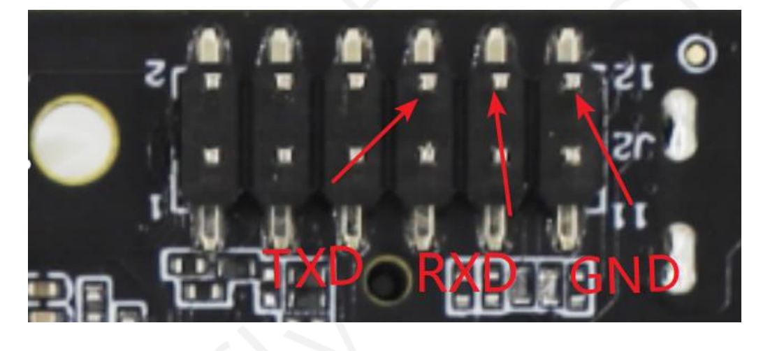 用usb转ttl的rx、tx和gnd接上下图的引脚,并打开串口助手波特率为115200