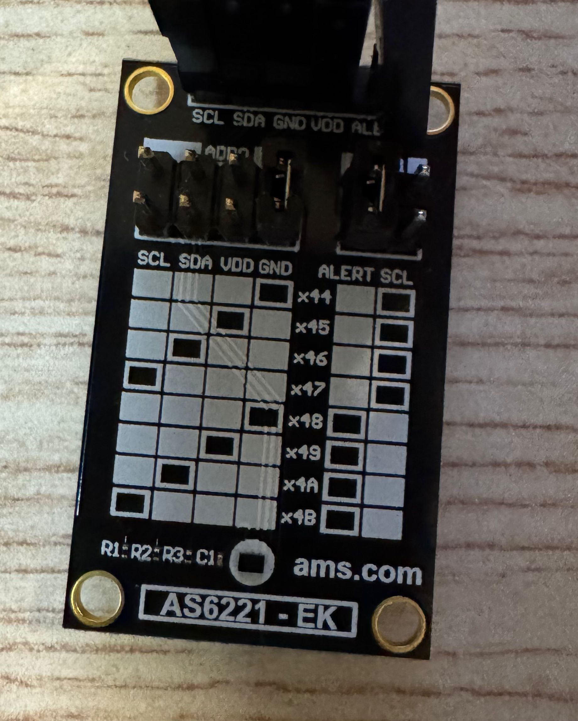 到手默认地址是0x48,可以自行选择跳线帽跳线位置选择地址,AS6221支持的地址为0x44~0x4B八个,在对于IIC接口本就不多的产品来说,如果出现地址冲突可以通过外围电路直接更换它不同的地址让他可以和其他设备挂载在同一IIC总线上。