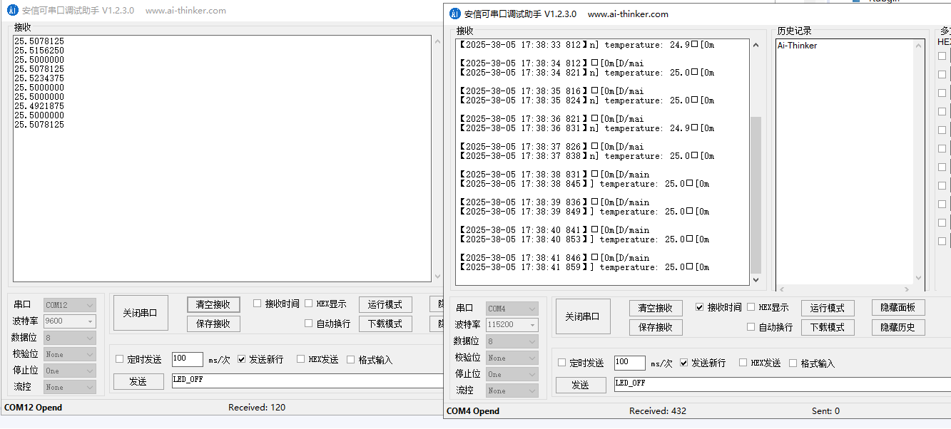 我们再来看看同一时间AHT20(右)和我们as2661(左)测量的的数据