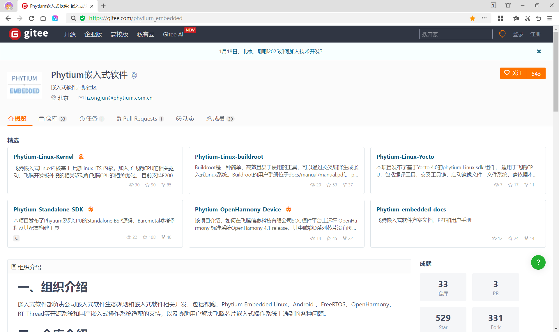 首先感谢iCEasy寄过来的飞腾派样片。我想实现飞腾派操作系统的定制化,第一步就是找到飞腾的官方操作系统代码仓 https://gitee.com/phytium_embedded ,如下图所示: