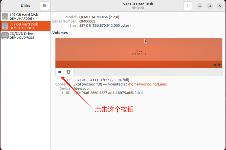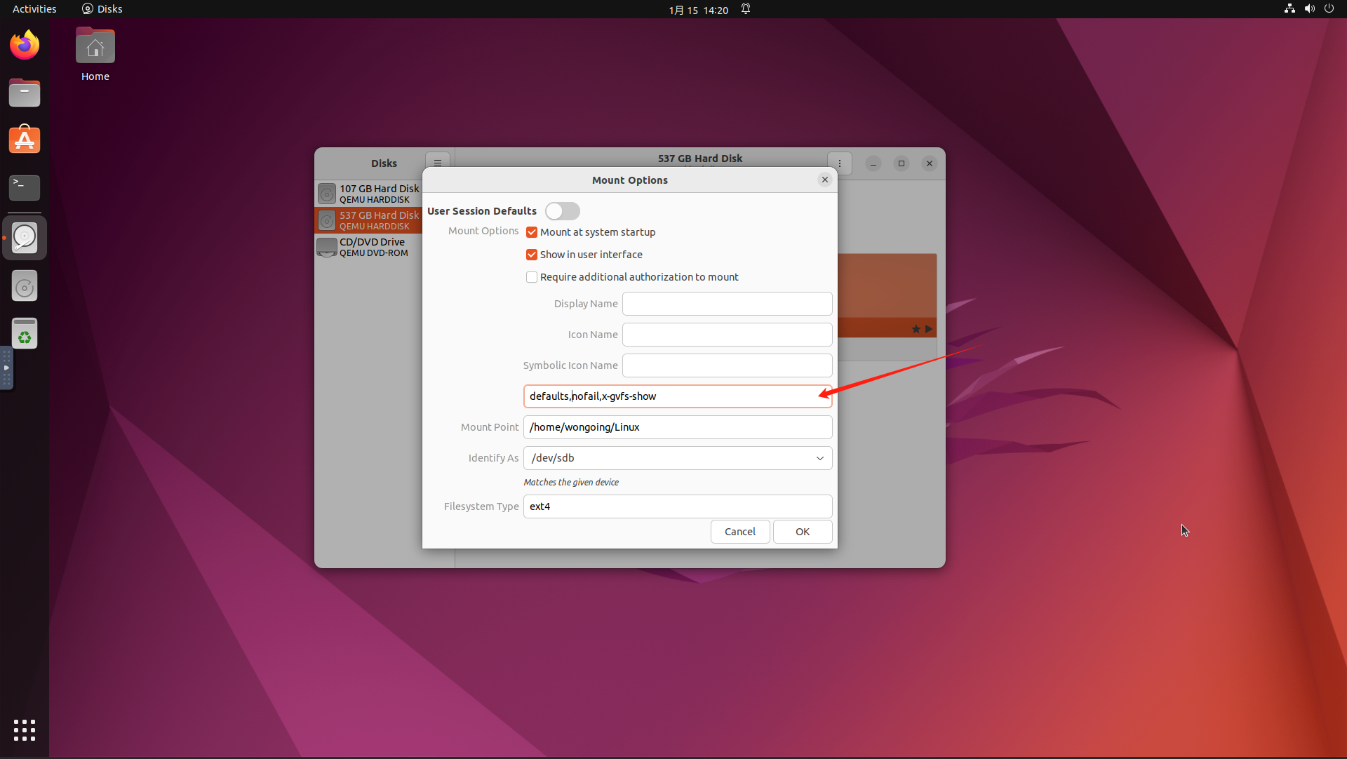 然后点击OK保存。然后取消挂载,再重新挂载,具体如下: