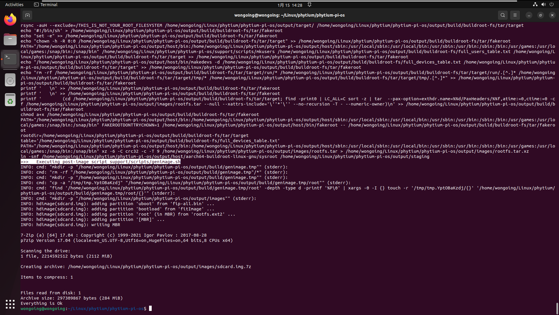 然后,把原来phytium-pi-os源码的output目录删除,然后make clean,再重新按README中的编译步骤进行编译操作,就能正常编译通过了,结果如下图: