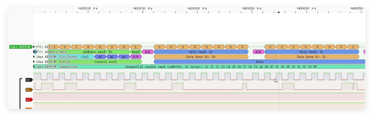 开发板拥有一个2K大小的EEPROM,可以尝试使用逻辑分析仪采样I²C通信的数字信号