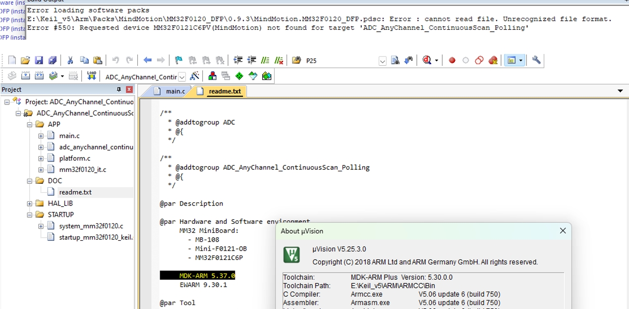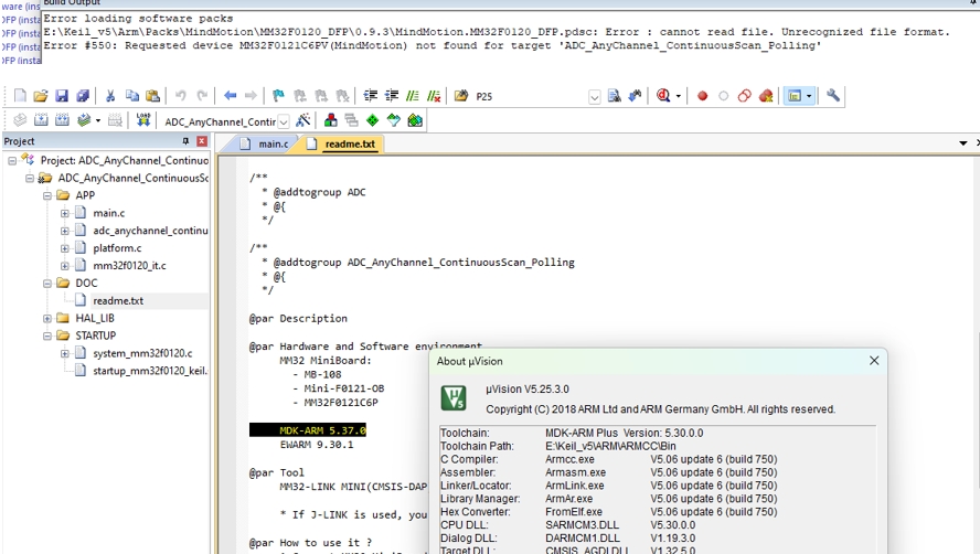 这款板子,我们需要安装但如果MDK的版本不够,会安装上,但是无法使用,那么就需要更新MDK的版本,按照readme,需要安装5.37,至少不要差不太多,比如5.25是无法安装的:需要更新高一些的版本!!!
