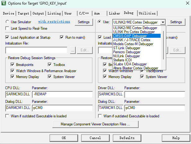 转到Debug中选择蓝色标记的选项即可解决这个问题。