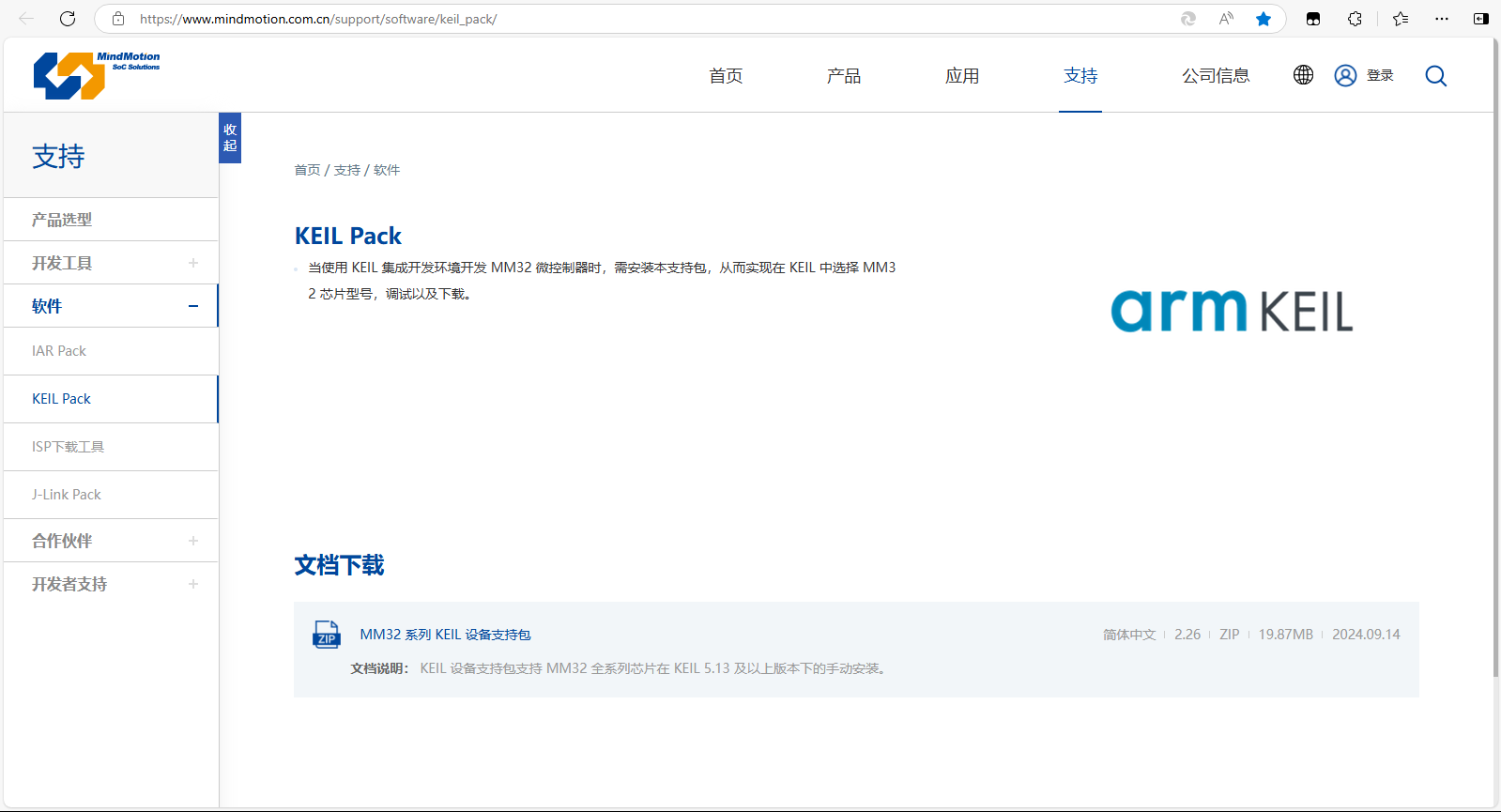 首先我们先在这个网址下载keil5支持包:https://www.mindmotion.com.cn/support/software/keil_pack/