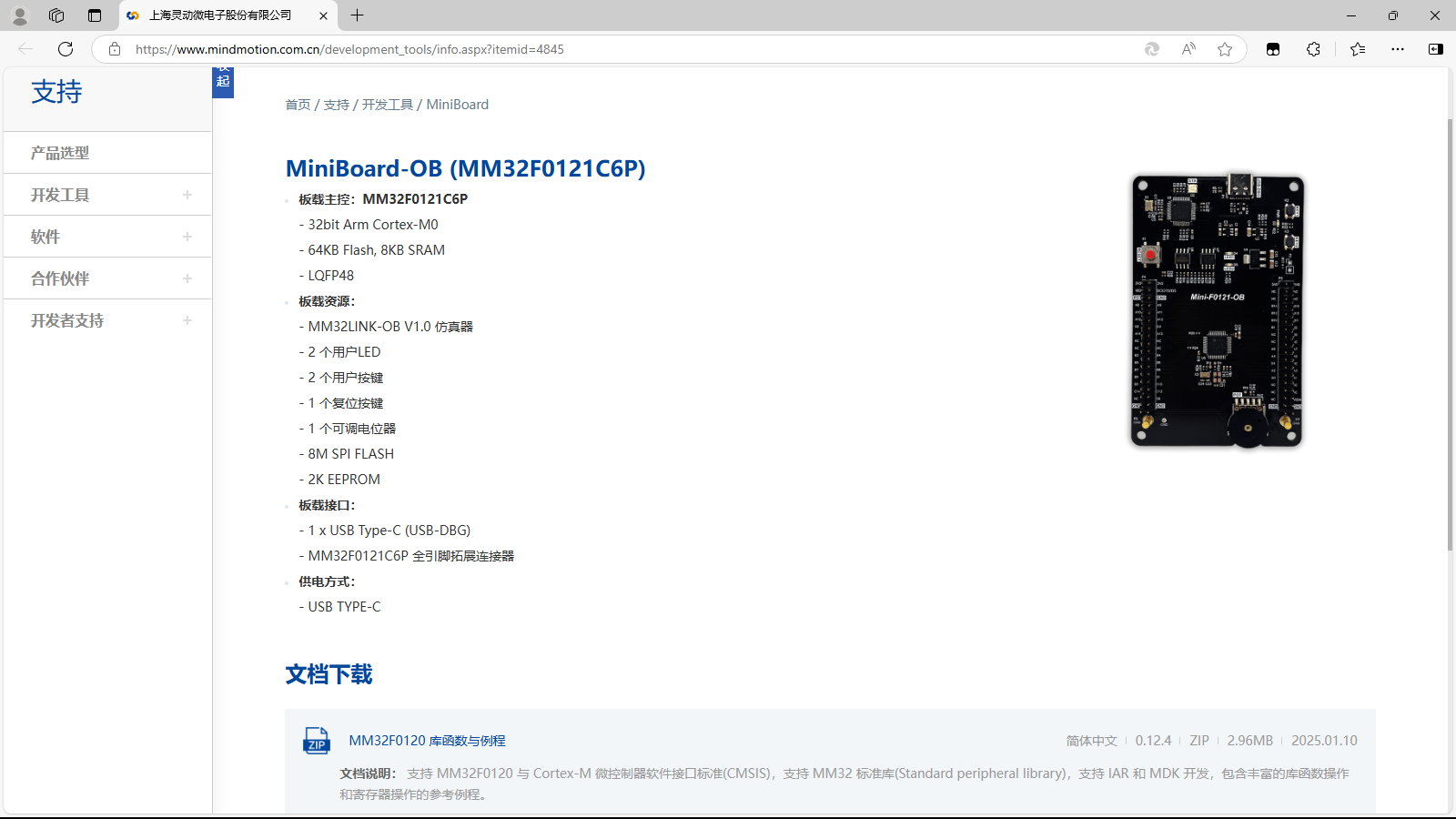 下载后的文件包含MM32这一个系列的所有支持包,找到MindMotion.MM32F0120_DFP.0.9.3文件双击即可将MM32f0121c6p芯片添加到你的keil5中。接下来在这个网址中下载开发板的示例代码和原理图和pcb文件https://www.mindmotion.com.cn/development_tools/info.aspx?itemid=4845