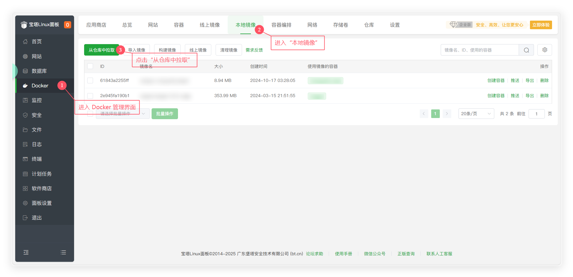 可以使用宝塔面板便捷管理 Docker 镜像与容器