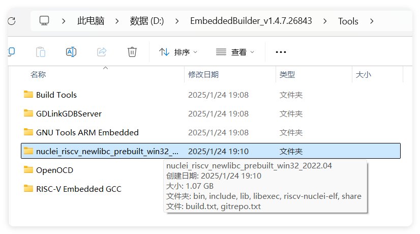 将下载到的 Nuclei RISC-V Embedded Toolchain 解压到 GD32 Embedded Builder 的 Tools