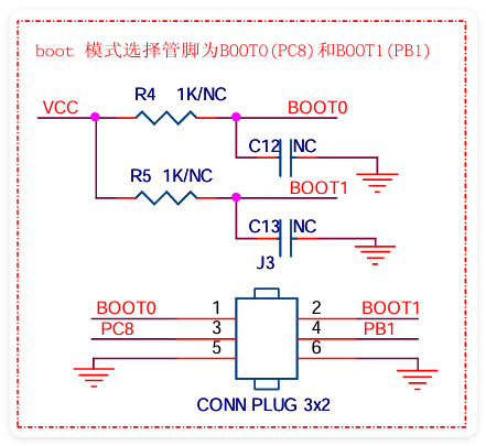 在烧录前,需要进入 BOOT0,开发板并未焊接 R4,所以调整跳线帽后需要手动短接 R4(或焊接电阻)的同时按下复位按钮