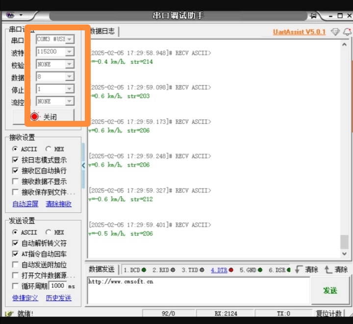 串口接串口转 usb 后在串口助手里即可看到数据,开箱即用,非常方便。