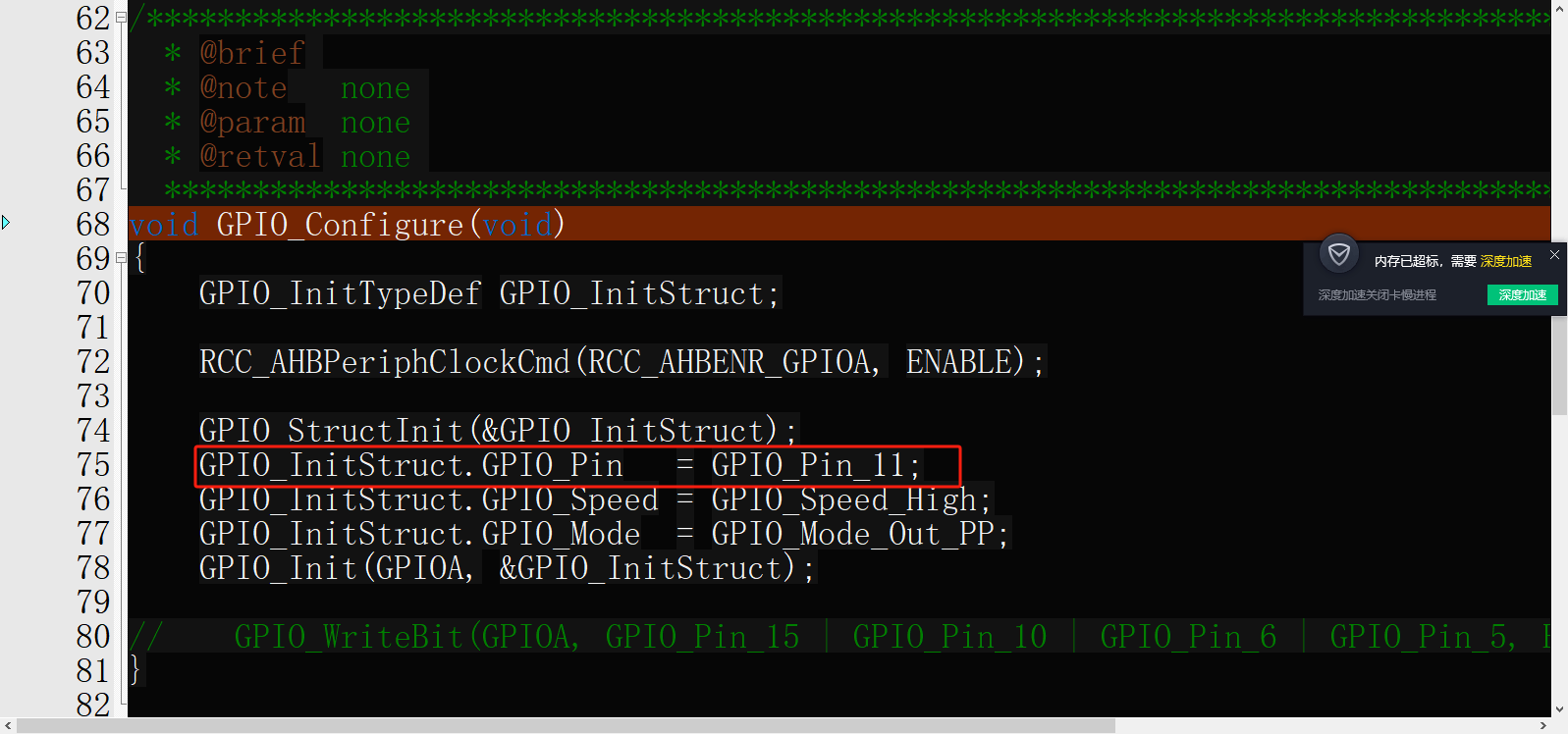 1.配置LED的IO口,PA11,配置推挽输出