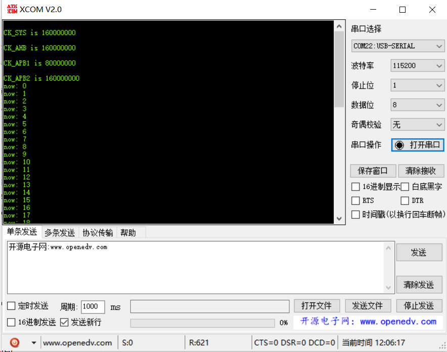 串口发送程序是在官方例程上改的,因为没有灯所以删除了官方的灯闪烁代码