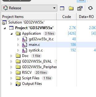 当Output窗口出现 Completed 即表明编译成功,固件文件保存在GD32VW55x_Demo_Suites_V1.2.0 -> GD32VW553H_EVAL_Demo_Suites -> Projects -> 01_GPIO_Runing_LED -> SES -> Output -> Release -> Exe 目录下 GD32VW55x.bin,此文件可用于后文程序烧录