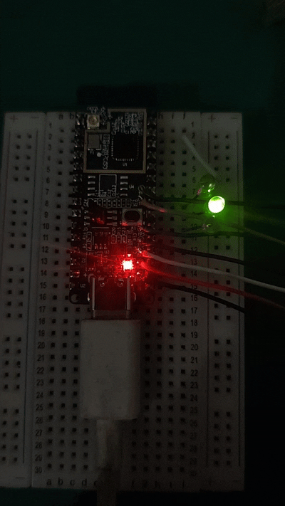 开发板上设有一枚Reset复位按键;外部供电接口采用Type-C接口,但是需要注意,该接口仅可实现供电功能,并无数据传输功能;板上有一个红色LED灯,无法通过程序控制实现免插接外部元件点灯,为DC供电信号灯;开发板射频部分无屏蔽罩,板载天线,同时提供有IPEX接口,支持外接天线;开发板上有两组跳线帽,通过不同组合实现不同功能;MCU大部分接口通过邮票孔引出,部分接口以触点形式引出。