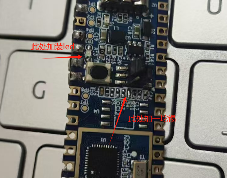 1:把R4电阻上一坨锡短接,原本是应该接0402的1k电阻,如果你方便的话焊接一个0402的1k电阻在R4上也可以