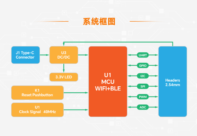 无线连接:支持Wi-Fi 802.11 b/g/n和蓝牙5.0双模连接,满足物联网设备与云端、手机等设备的无线通信需求。