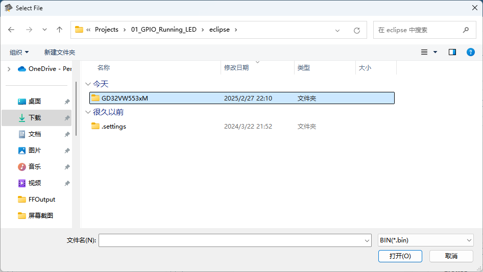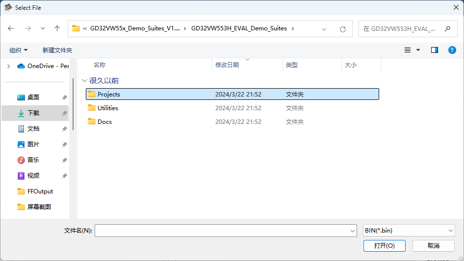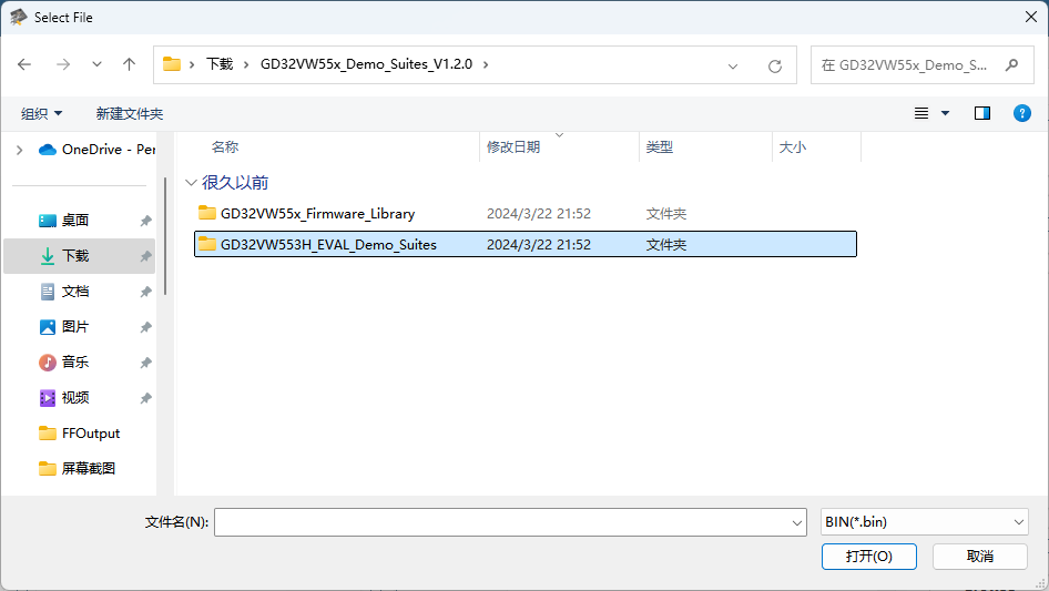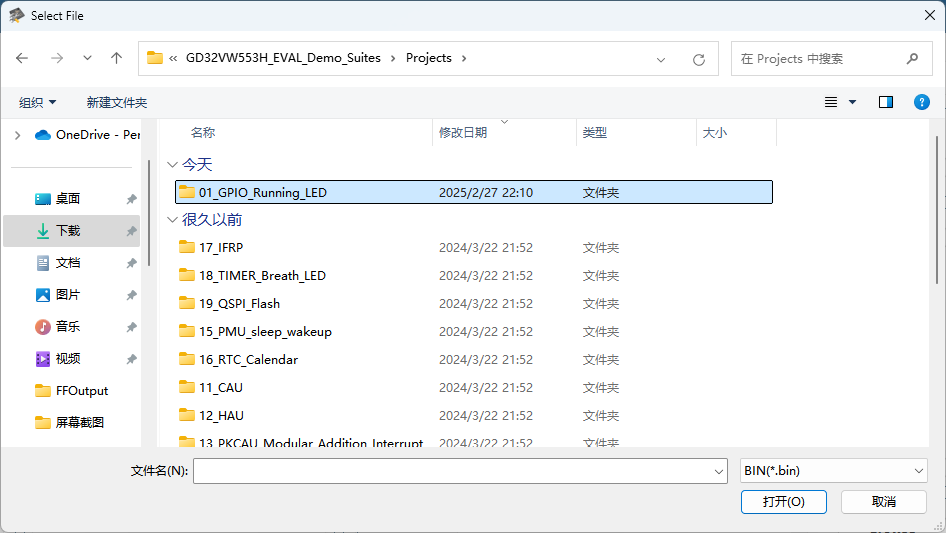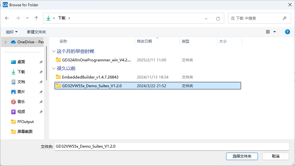 目录选择刚刚下载的GD32VW553 Dem0 Suites文件