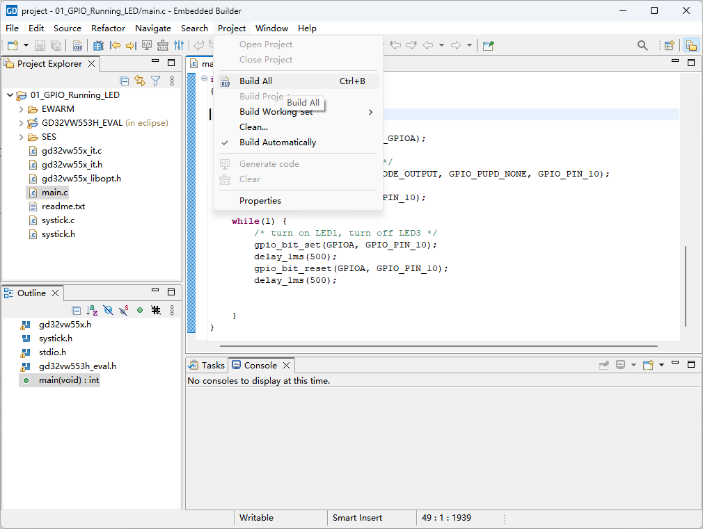 我们先点开GD32 Embedded Builder中的程序