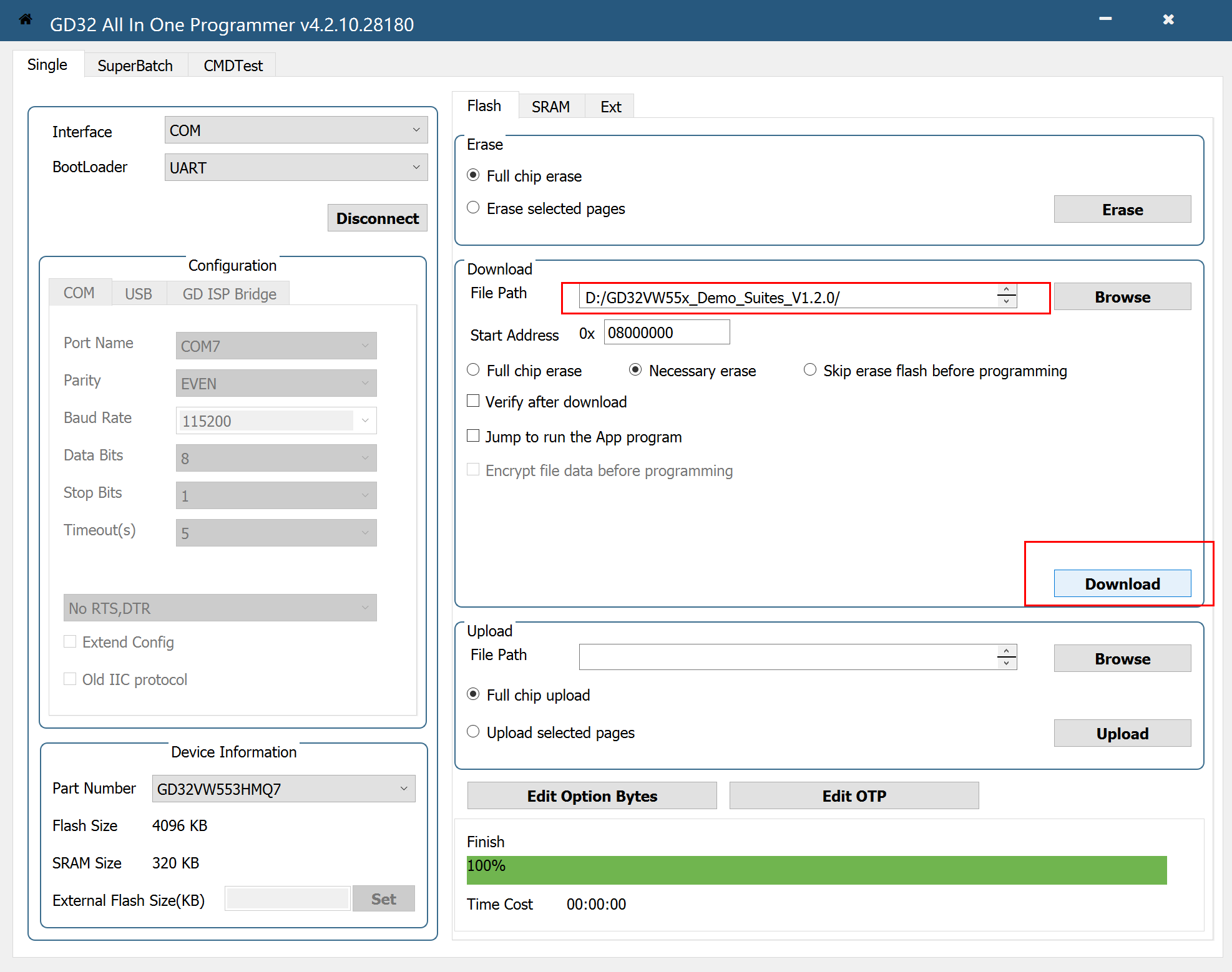 具体的引导模式请查看GD32的数据手册。然后打开烧录工具如下图所示。