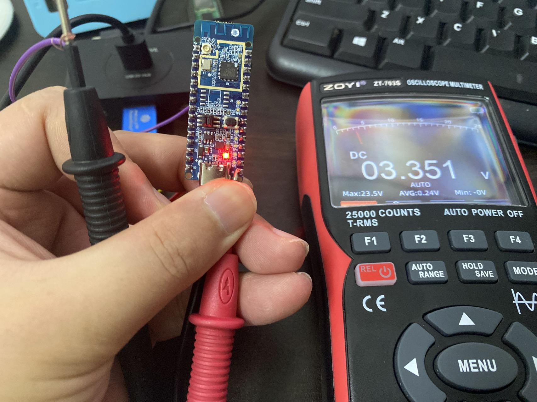 上图为万用表GND 接开发板地, 红色表笔接PA11