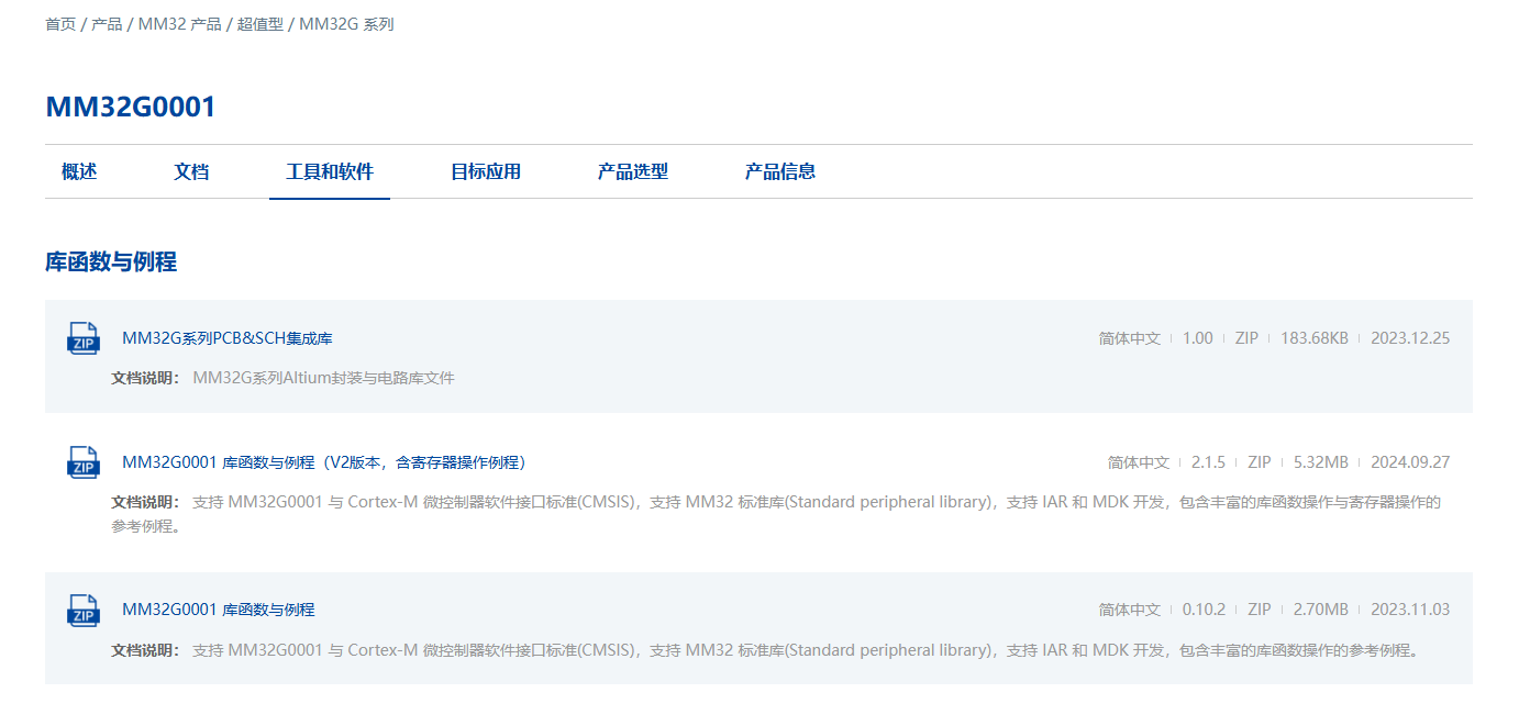 2、 在https://www.mindmotion.com.cn/products/mm32mcu/value_line/mm32g_value/mm32g0001/ 下载对应的例程进行点灯