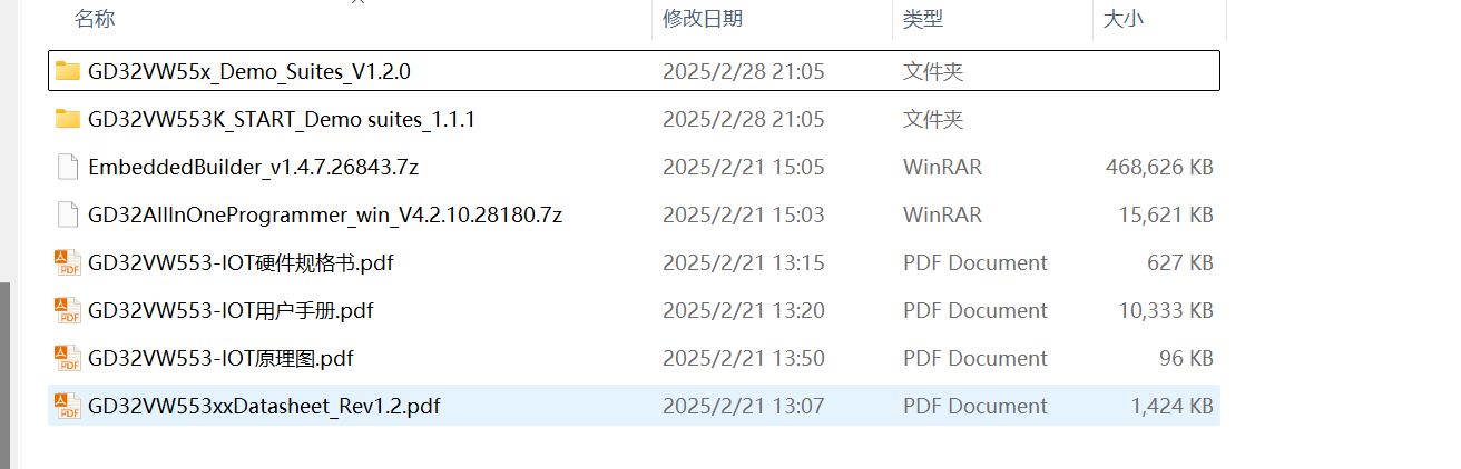 GD32VW55x_Demo_Suites_V1.2.0,GD32VW553K_START_Demo suites_1.1.1这两个文件里边是开发板的例子源码,大家可以研究研究。这里主要带大家实现简单的点灯实验。