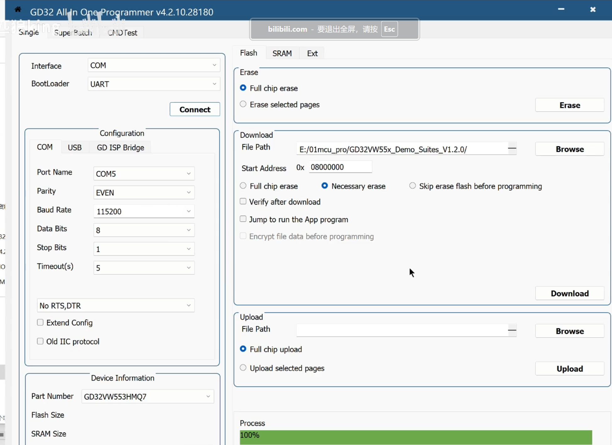 GD32AllInOneProgrammer_win_V4.2.10.28180这个工具是程序烧录工具。注意芯片型号要选择如图的型号。