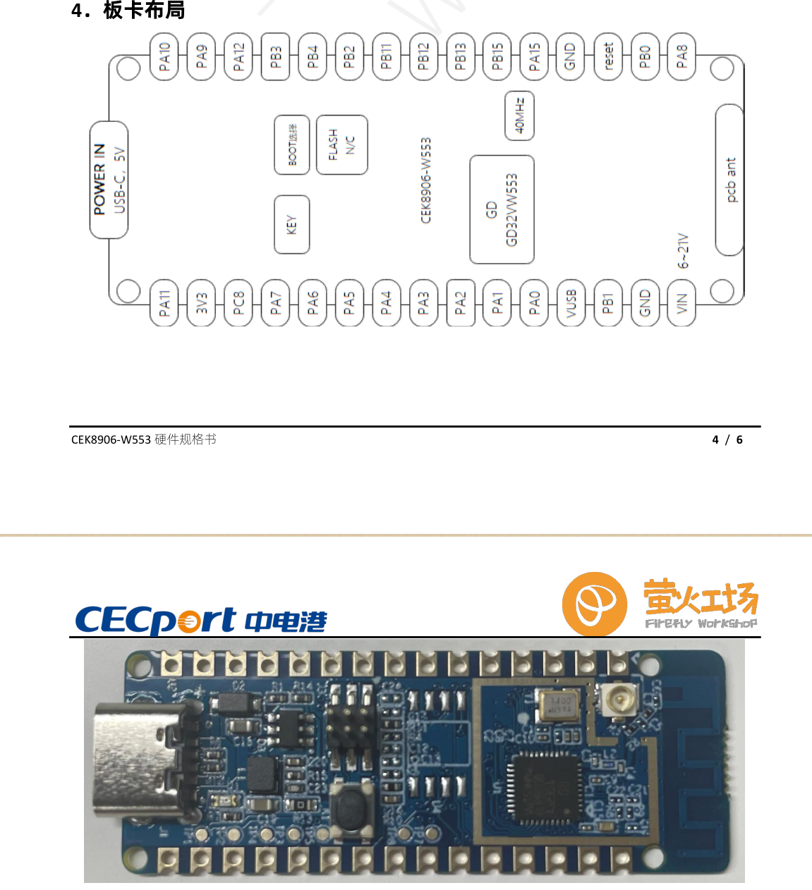 硬件规格书里边最重要的资料是引脚名称图,方便我们确定各个引脚的位置。