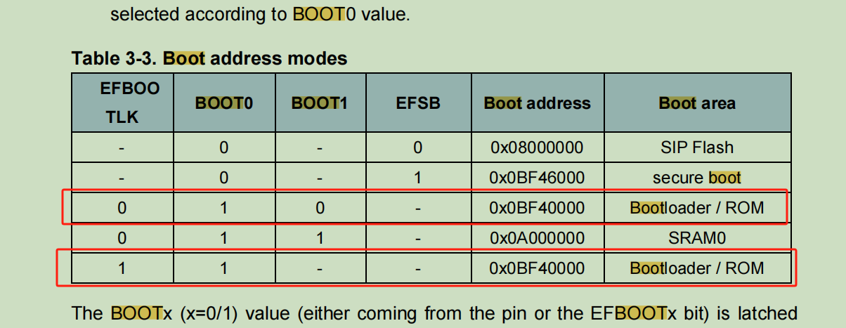 启动bootloder,需要在上电前改变boot0和boot1的电平,在上电之后会自动检测boot0和boot1的电平进入引导程序。根据表格只需要将boot0置高,即可。