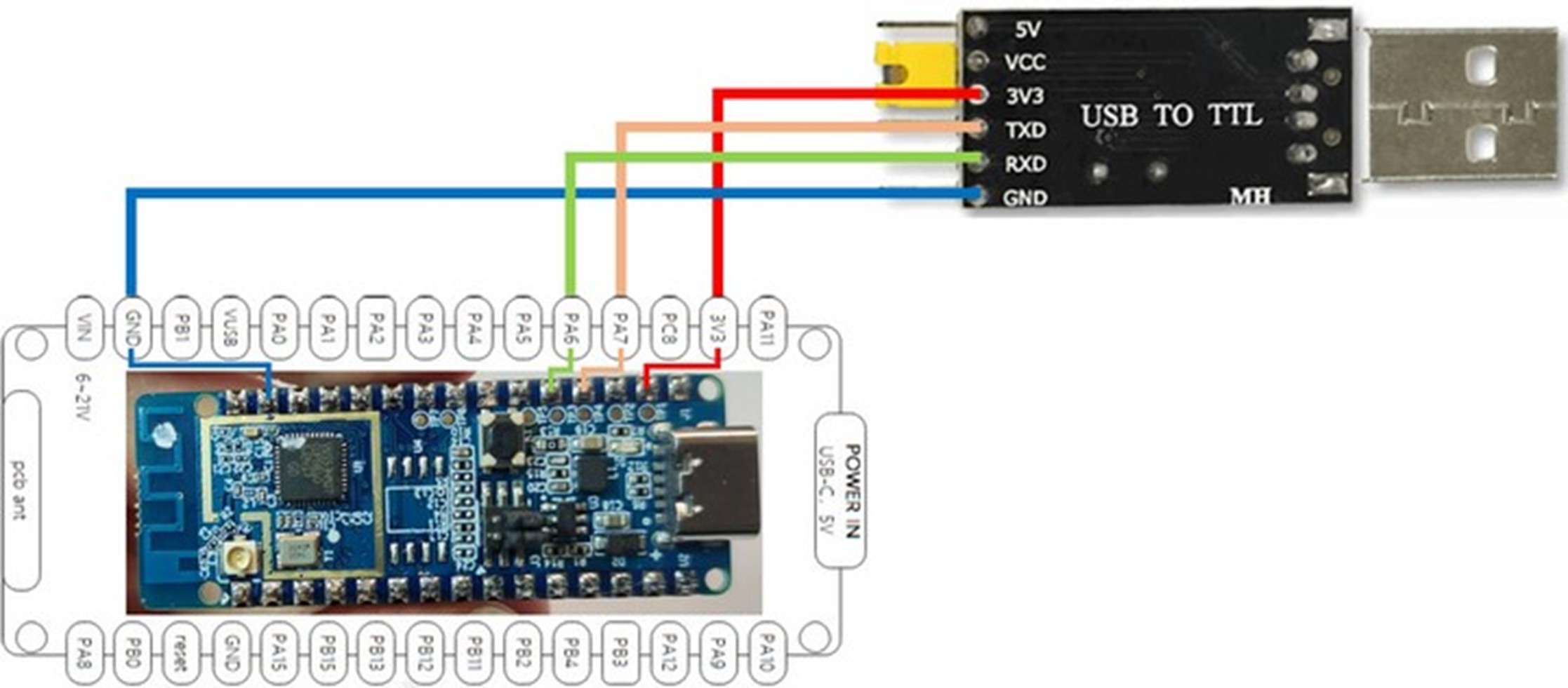 因为开发板typec不带有下载功能,所以需要usb转ttl来连接串口下载