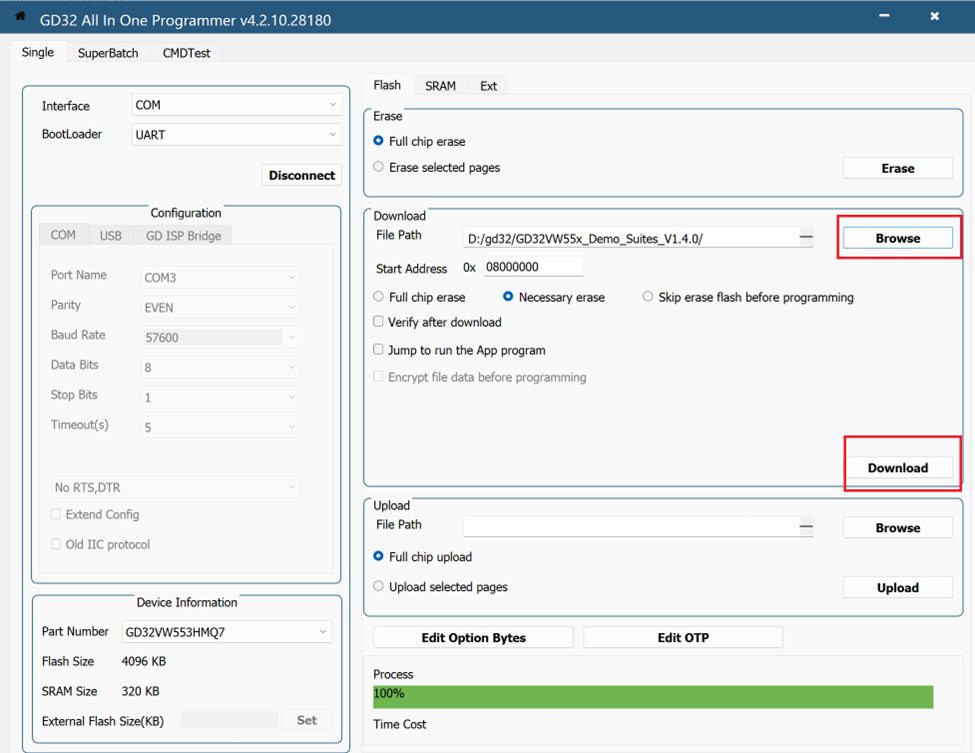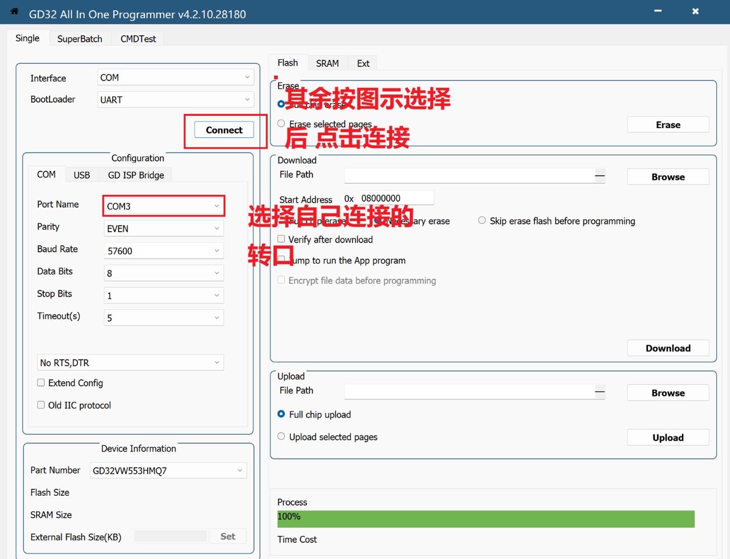 基于芯片内部Bootloader的编程软件,通讯接口支持UART和USB,支持对MCU的Flash和选项字节进行编程/擦除/读取等基本操作。后续烧录程序需要用到.