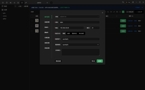 确保网络正常连接后,通过SSH协议远程连接,这里使用的是XTerminal工具,地址为ip地址,端口默认22,登录的用户密码均为openkylin,确认无误后连接即可。
