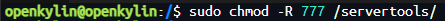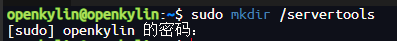 首先创建项目放置的目录,需要使用sudo来创建文件夹,密码为openkylin,并使用chmod -R 777赋予文件夹全部权限