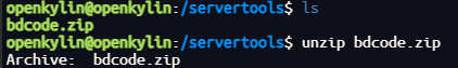 接着将我们打包好的Golang程序上传到文件夹里,并使用unzip命令解压压缩包