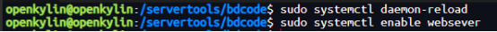 随后输入sudo systemctl daemon-reload 重新加载 systemd配置文件,再输入sudo systemctl enable websever设置开机自启,最后输入sudo systemctl start websever启动服务