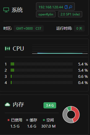 我们在这块搭载了飞腾四核arm64架构处理器以及4GB运行内存的板子上安装了开源麒麟(openkylin)2.0 SP1系统,内核版本为Linux 5.4.18-63+,系统界面总体还是非常漂亮的!