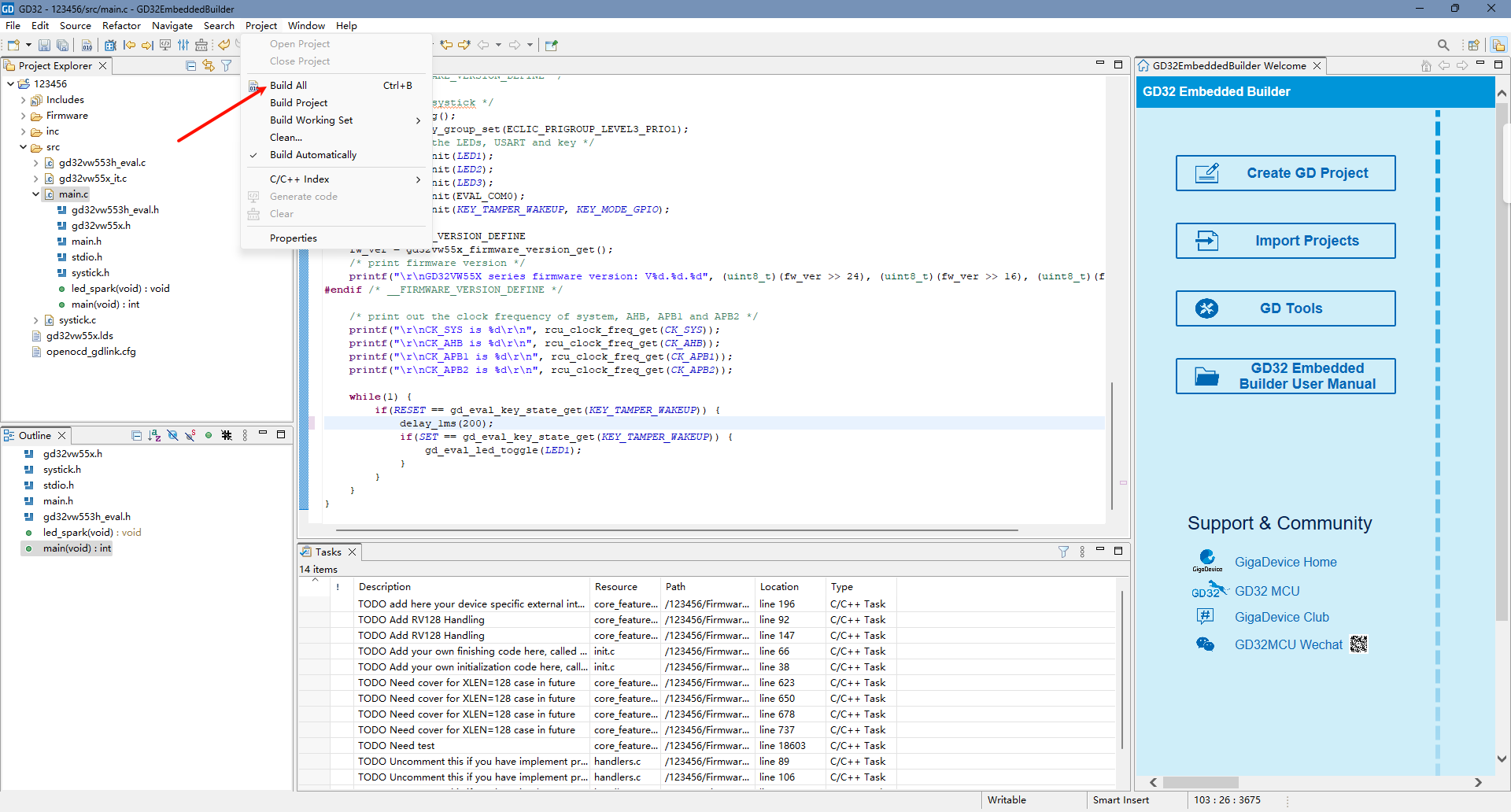 GD32VF103_standard_peripheral库到工程目录 - 在工程中添加库文件及用户代码