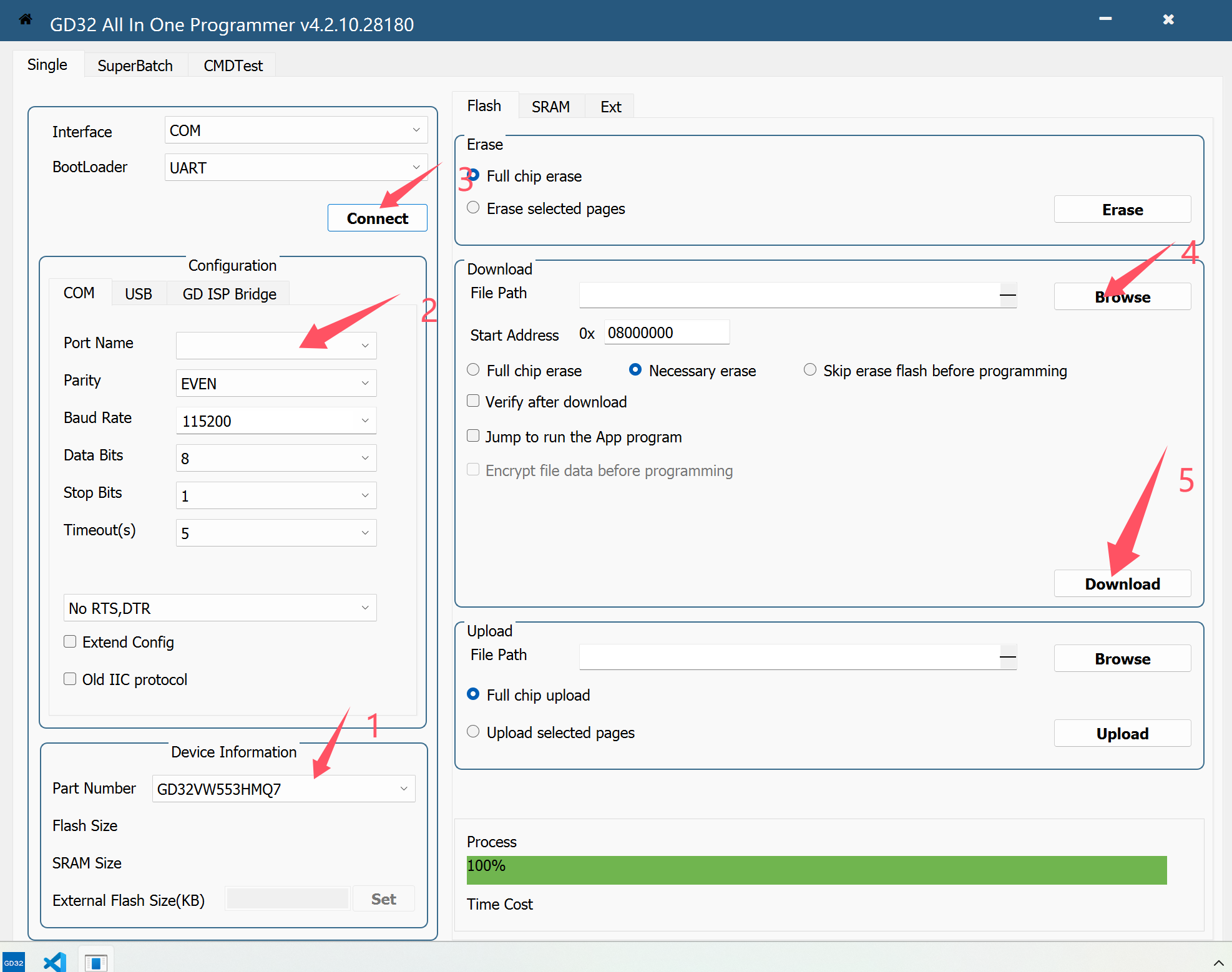 GD32AllInOneProgrammer:串口烧录软件(免安装),将编译生成的bin文件通过串口烧录到开发板上