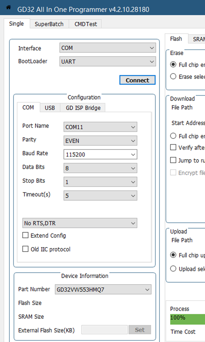 这个是GD烧录软件,支持串口,usb和GD的isp,