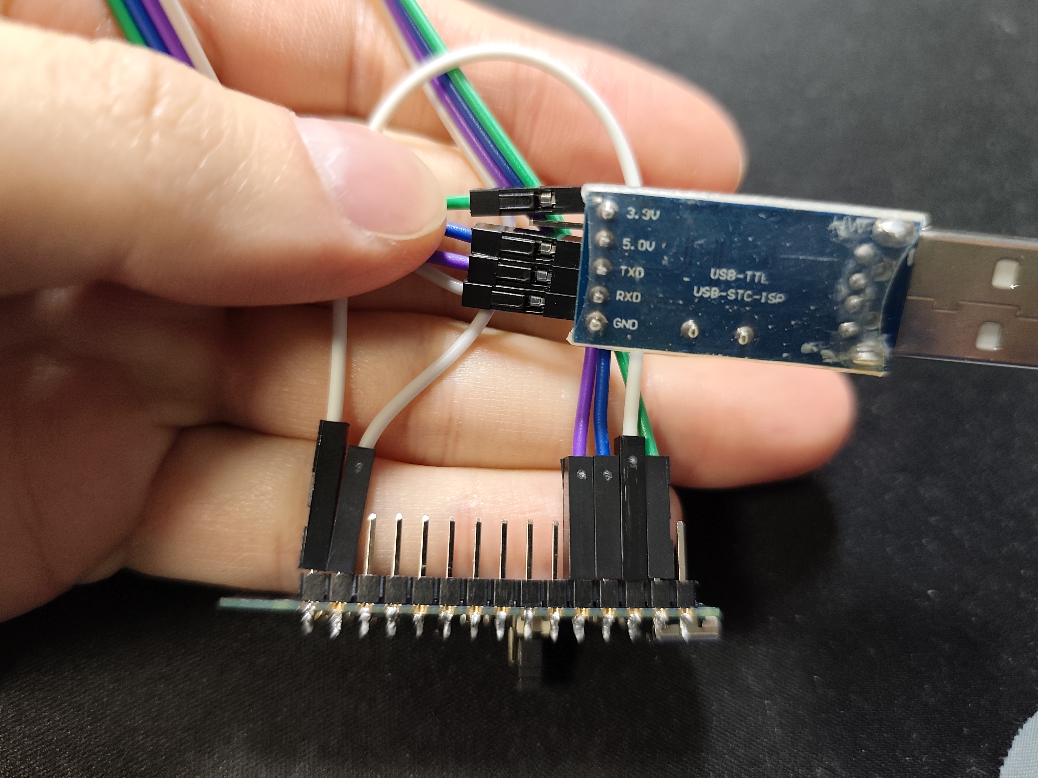 带上USB转TTL模块,来一张全景照(注意线的颜色):