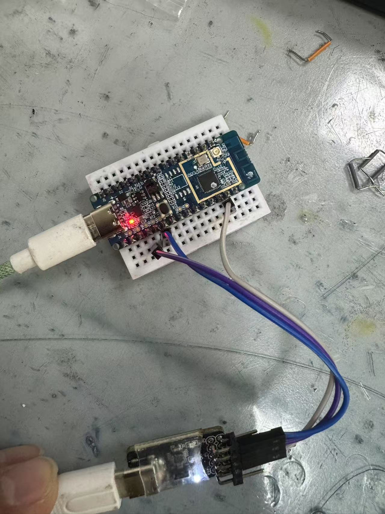 准备好硬件,连上串口工具,从社区找来点灯代码复制粘贴,编译没有错误没有警告,开发环境用embedded builder