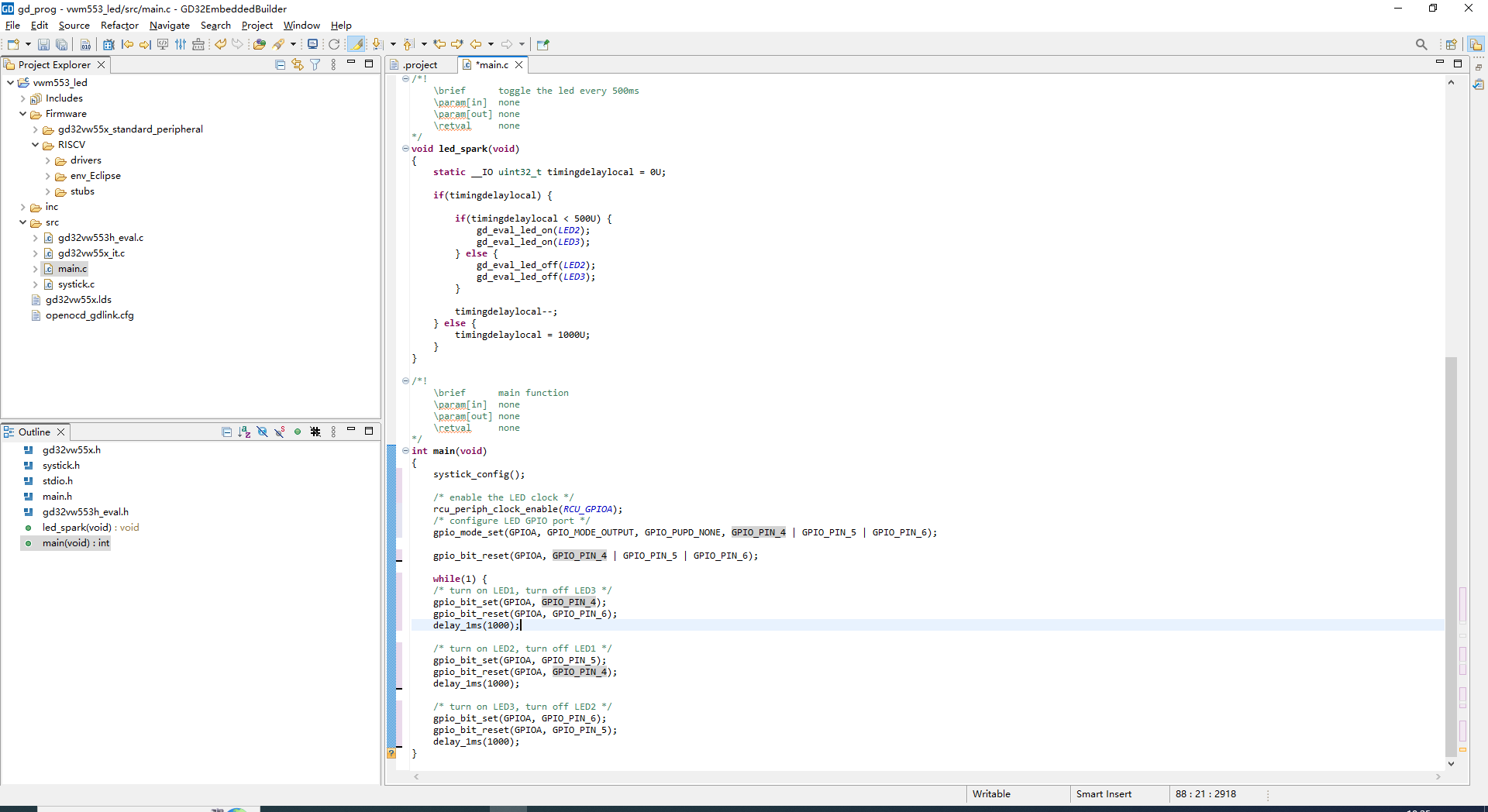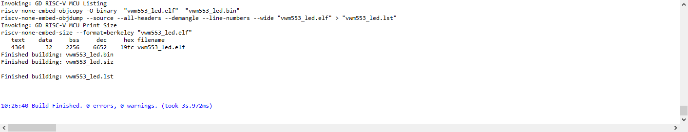 点灯完成(ps:由于embedded builder调试只能使用gdlink,所以可以用这个写代码,编译好后用串口工具下载bin文件到板子上)